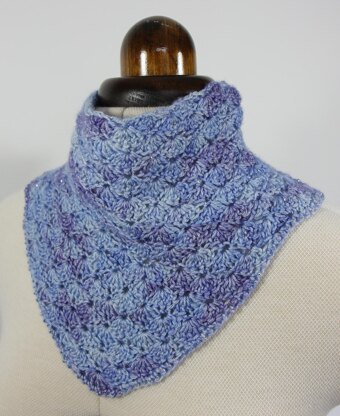 A beautifully soft, beaded cowl in two sizes and matching pair of fingerless gloves. The cowl deepens at the front and is beaded throughout. A matching row of beads edge the gloves. The beads are in the same tones as the yarn, adding a subtle sparkle.
