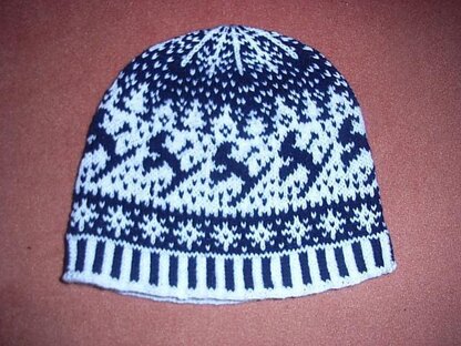 As the beanie uses only two colors it's also suitable for fair isle knitting beginners.