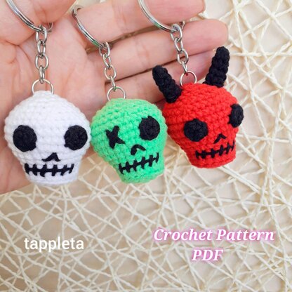 Skull Trio crochet pattern PDF. 3 in 1 Amigurumi Skull keychains Halloween pattern.