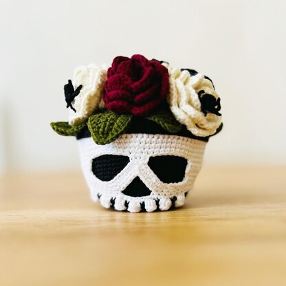Skull with flowers, crochet skull pattern, amigurumi skull, pot with flowers pattern