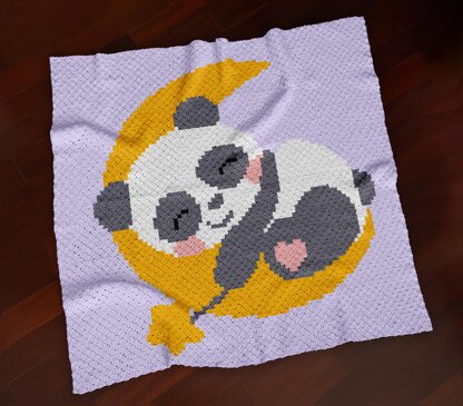 Panda Blanket made using the Corner-to-Corner crochet technique features a Panda cozy pixel-style design, featuring a peaceful bear snoozing on a crescent moon, surrounded by stars. It's the perfect afghan for baby showers, nursery décor, or sweet bedtime themes. Create a cute and snuggly throw for any room.