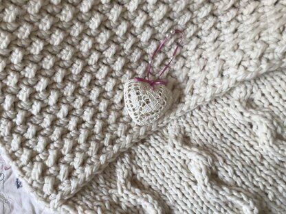 Chunky, warm and cozy. Textured with raised stitches throughout for a dramatic look! Completely reversible. A combo of simple crochet and knit stitches used. Fits any decor in any room.