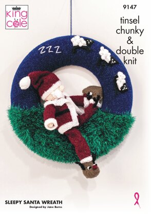 Sleepy Santa Wreath Knitted in Tinsel Chunky & DK - 9147 - Downloadable PDF