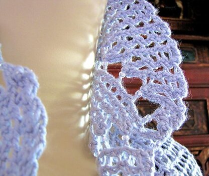 Lacy slip stitches do not gobble up expensive yarn! 220-250 yards (one or two skeins) are all you need to crochet the loop scarves shown. I've included tips for increasing or decreasing the width of the scarf in different yarns. Pattern includes a stitch variation and a bead-as-you-go option.