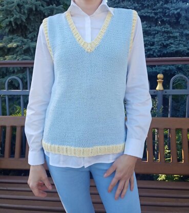 Tutorial for knit two-tone Vest - Slipover V neck with "French rib"