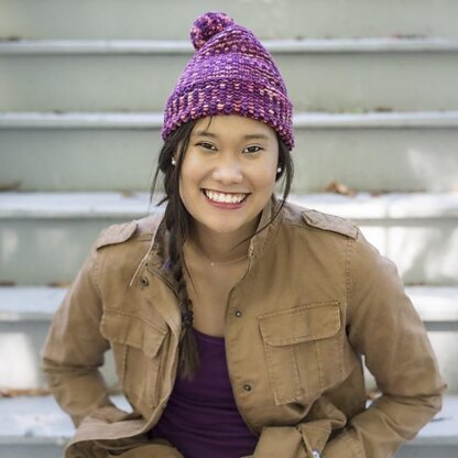 I love color. There’s no denying it. If you’re like me, you’ll understand how yarn shopping can lead down the slippery slope of purchases that might be difficult to match with a pattern. Admit it, you have a few of these in your stash too — that highly variegated skein that was too pretty to leave behind. The Slippery Slope Hat is just the thing for your slippery slope skeins. Beautiful multi-colored yarns are shown off to best effect with the simple slipped stitch pattern. Fold the brim up for a peak at the reverse side — it’s just as pretty as the right side — or wear it without folding the brim for a trendy slouch. Add a pompom or go without, this is one slippery slope you’ll be happy to go down again and again.