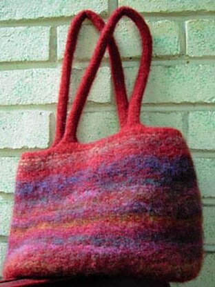 A knitting pattern of a generously sized bag that can double as a small tote. Work with a double strand of worsted weight throughout.