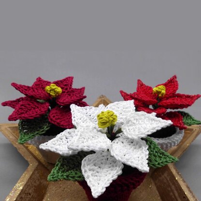 The small poinsettia in a flower pot is easy to crochet even for beginners, brings a beautiful, fresh color in the Christmas holiday season into your home.