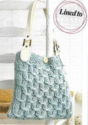 This is a pattern for a smocked stitch bag, originally published in Lets knit. It is worked in a smocked rib stitch with moss stitch borders, lining and faux leather handles. Photos Lets Knit.