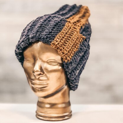 This simple beanie, with a wide brim and peaked top, is great for any style.