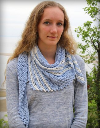 It is a side-to-side shawl, starting at one end and working across the back in ever-increasing rows. A delicate scallop edge is formed along the bottom edge as you work the rows.