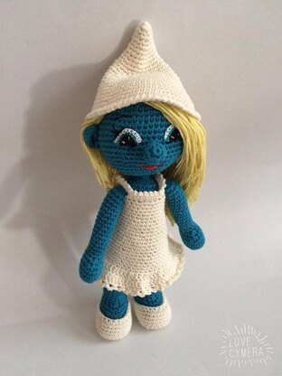This is a Smurfette pattern. Size is approximately 25 cm.