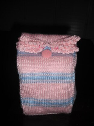 This pattern can be found for free online at https://jessieathome.com/snack-bag-for-school-free-knit-pattern/