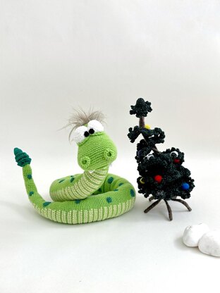 The crochet pattern contains many useful techniques. For example, how to sculpt the snake’s muzzle. How to sew big eyes and white teeth. The snake is crocheted with a crochet hook only. It is made of a wireframe that makes it possible to bend the toy and fix its position. This pattern is suitable even for beginners because it is easy to crochet this snake. You will need only a little time and a good mood.