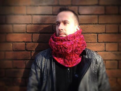 Worked in chunky/bulky yarn, on 8mm needles, this is a super quick knit, and should easily wrap around your neck twice, giving an incredibly warm and cosy garment. The cowl stands quite well on its own: the cables and ribs, along with the edging, give it an almost architectural strength – perfect for burying your face in, against the cold weather.