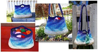 About the projectThis super big tote has a super sturdy base (no plastic or inserts needed) and can hold up to 12 large skeins of yarn without sagging. An additional, pocket bag, is included too.