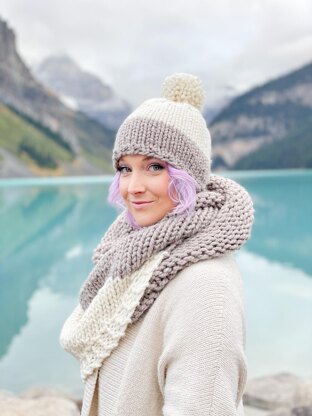 Matching the original Snow Cap Triangle Scarf, this two-tone hat is made with size six super bulky yarn, which means that it’s quick to knit up, and is the perfect beginner project for anyone wanting to learn how to knit in the round, switch colors and decrease. With two color options, you don’t have to choose between your two favs, as you can have the best of both worlds.