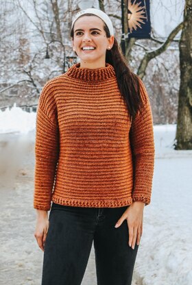 The Snow Day Sweater is a size-inclusive, easy crochet pattern. It primarily uses half double crochet and slip stitch and has a classic fit with 2-4 inches of positive ease.