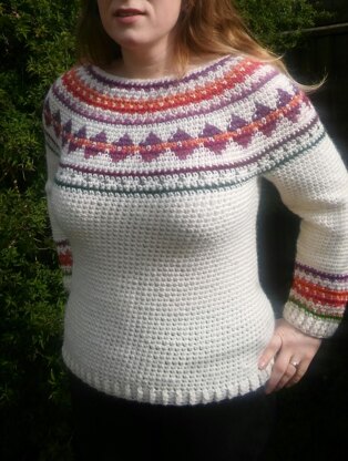 The sweater is worked top down in the round. The yoke is worked in tapestry crochet with the RS always facing. Changes in colour should be made in the final yrh of the previous stitch. When you change colour mid-round, twist the ends of each colour around one another and carry the yarn you are not using across the WS of the work. The sleeves are worked in the round after the main body is complete. To join the round, ss into the first st (not the chain), then make 1 chain st and pull the yarn tightly – this will create a seamless/join free look to the garment. The chain sts at beginning of rounds do not count as a st, unless otherwise stated.