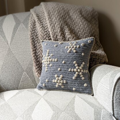 This bobbled snowflake pillow is perfect all winter long! Choose two colours in bulky weight yarn to make this easy and beautiful pillow cover.