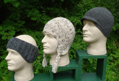 Caps for the favorite men in your life. Instructions for four caps for men plus a toddler size beanie are included in the pattern PDF.