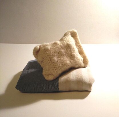 This soap saver is a fun project. Use the pouch to collect the small soap slivers or put whole bar inside. The wool acts as a natural exfoliant as well. The pattern works up fairly quickly. If you’ve never felted before, you will probably get hooked! It’s amazing to see your pieces transform in the washing machine as they shrink and the fibers intertwine. They are great to make for gifts as well.