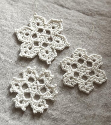 This is a pattern for 3 crochet snowflakes that all start with the same first 2 rounds for the center which form a star shape, then the remaining rounds differ in order to give you 3 unique and beautiful snowflake designs of different shapes and sizes. These make lovely Christmas tree ornaments, window decorations, use to decorate wrapped gifts, include inside holiday cards, or combine into a garland (garland instructions included). Use the suggested yarn or another of your preference - this is a great project to use up small quantities of leftover yarn since they require very little yardage. The pattern is worked in just 4 rounds for the smaller snowflakes and 5 rounds for the larger snowflake. It includes a pattern symbol chart for all 3 snowflake designs, written pattern instructions, step by step photos, and links to video tutorials.