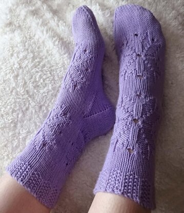 James C. Brett's 97% cotton yarn 'Glisten' has a delicately iridescent frosty sparkle, perfect for this wintry snowflake design. The complimentary moss ribbing of the cuff grips the leg gently, helping to make these socks wonderfully comfortable.