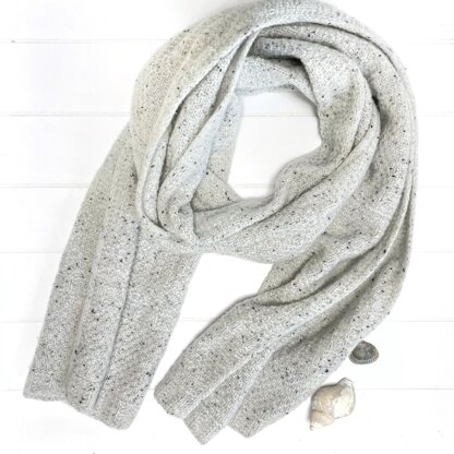 Although many different fibers would be well suited to this pattern, the Lana Como Tweed yarn shown in the sample adds interest via flecks of color and produces a scarf that is both lightweight and warm.