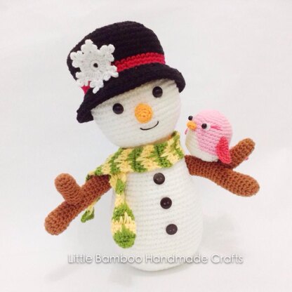 This is a DOWNLOADABLE PATTERN. Written in English using US terminology. The snowman and his best friend the pink bird is the best winter decoration for your home during Christmas.