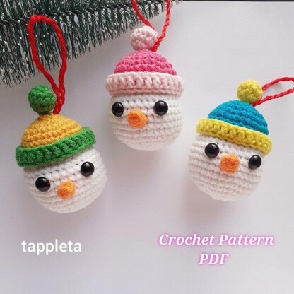 Snowman baubles crochet pattern PDF. Christmas tree decorations crochet.