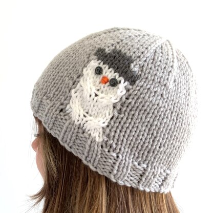A classic beanie, with a snug fit and a snowman on the side. Knitted in chunky yarn, it will keep you lovely and warm in cold weather.