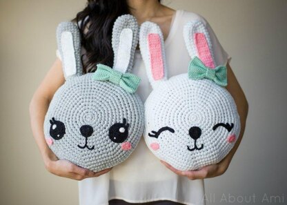 These sweet bunny pillows are irresistibly snuggly and the perfect size to cuddle! Their cute expressions will brighten up any room and add a whimsical touch to your decor! The pattern is written in US crochet terminology and the finished dimensions are: 13.5"/34 cm (diameter of face with stuffing) and 21"/53 cm (length from tip of ear to bottom of face). The printable PDF is a total of 7 pages including the cover page. PDF is in ENGLISH ONLY!