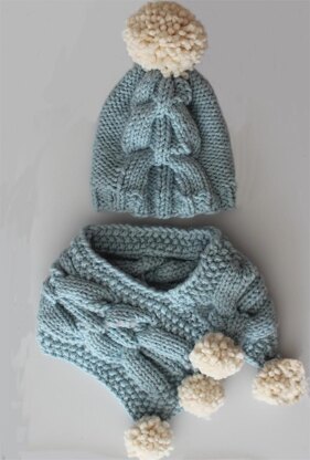 This warm and cozy cowl and hat set are a great addition to your winter wardrobe. You can wear the cowl as a scarf with a coat or just as an accessory with a sweater or top. The pom poms make a fun addition to this piece but are optional. This pattern is knit with bulky weight yarn at 9sts= 4". The sample was knit with Lion Brand Thick and Quick but any bulky weight yarn will work.