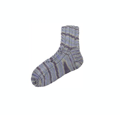 This is a lovely, lacy sock pattern with feminine appeal. This will fit a large child through an adult woman. It's not a sock for the beginner sock knitter, due to the lace pattern. You will need to know how to knit in the round and it helps to have knitted lace before.