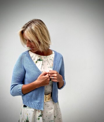 Knit it slightly cropped as shown, or lengthen the body for more coverage. The pattern also includes guidance on how modify the neck so that the cardigan closes across the front.