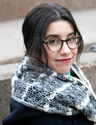 This cowl, with its graphic blocks of gray and cream, is my ode to the power of feminine voices within the #metoo movement, as well as the Times Up Initiative.