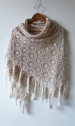 Solstice is a trapezium-shaped shawl made of join-as-you-go motifs. Finished size is 73" x 32" (186 x 82 cm), size is easily adjustable by adding\skipping motif rows.