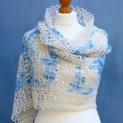 This lightweight shawl features airy lace beaded motifs combined with rows and rounds to create something really special - in fact it would make a wonderful wedding or party wrap!