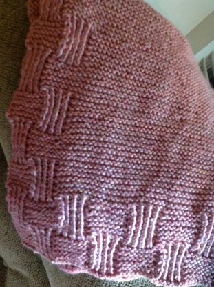 Pattern can easily be adjusted to a car seat cover by reducing the number of border repeats. Cast on only 11 or 13 multiples of 8 stitches depending on your gauge.