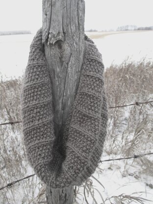 This cowl is knit in the rounds and is seamless. It comes in 4 different sizes.