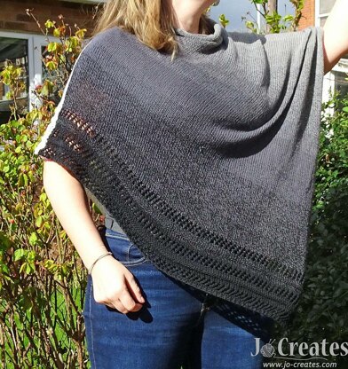 It is knitted flat (on straight or circular needles) and then seamed along the sides once the knitting is completed. The finished poncho measures 26” x 27” (66cm x 69cm).
