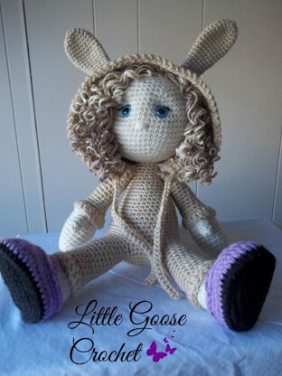 Sophie the Bunny Girl is a cute little Easter Bunny doll. Her arms, legs, tail, ears and hood are made separate and then added in on the appropriate round on the body. There is NO sewing!