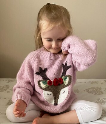 This jumper has a charted motif for a silhouette and embroidered deer.