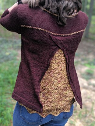 Dramatic, elegant, and seamless (literally!). South Woods combines the clean lines of a simple pullover with a striking all-over lace pattern. The result is a stunning statement piece. The loose, flowing bottom hem gradually transitions to a fitted, tailored top, complete with set-in sleeves for a comfortable fit. And the innovative construction technique means NO SEAMS!