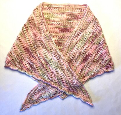 A big dose of Southern lace charm in this delicate shawl, a great compliment to any wardrobe. Lovely lace bands in between eyelet band rows, makes this a great, easy wear, easy to knit shawl that just about everyone will love. Finished size is about 69 inches wide, at widest point and 24 inches depth.