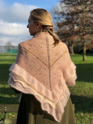 If you don’t like mohair you can swap the yarn for any lace yarn. Yarn A: 360-400m, West Green Loft Yarns 100% merino , 400m/100g, colour Victoriana Yarn B: 350-370m, West Green Loft Yarns 100% merino , 400m/100g, colour Margot Yarn C(lace): 290-310m, West Green Loft Yarns silk+mohair , 400m/50g, colour Blush