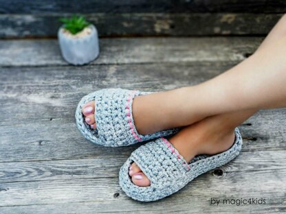 A brand new & original & quick design for SPA & WELLNESS SLIPPERS for adults, using T-shirt yarn.