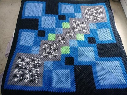 This pattern is easily resizable, and your finished blanket will measure approximately 16 times bigger than the smallest square in the pattern (labelled as "1" in the schematic, the smallest of the variegated squares in the pattern sample).