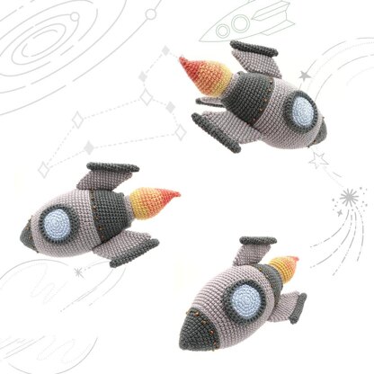 MEASUREMENTS With the yarns used in this project, the rocket measures 22 cm tall and 13 cm wide.